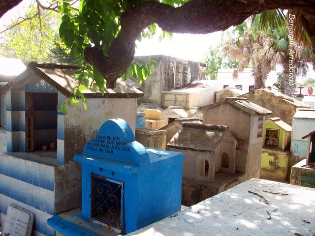 No quisiera hacer una afirmación tajante, pero a los tres panteones de esta región que he entrado, noto que predomina el color azul, razón por la cual creo que por estos rumbos la muerte y el recuerdo de los ya idos se tiñen de ese color.